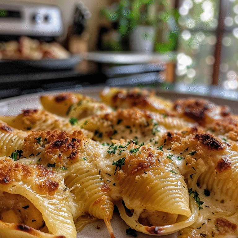 Irresistible Garlic Butter Chicken Alfredo Stuffed Shells