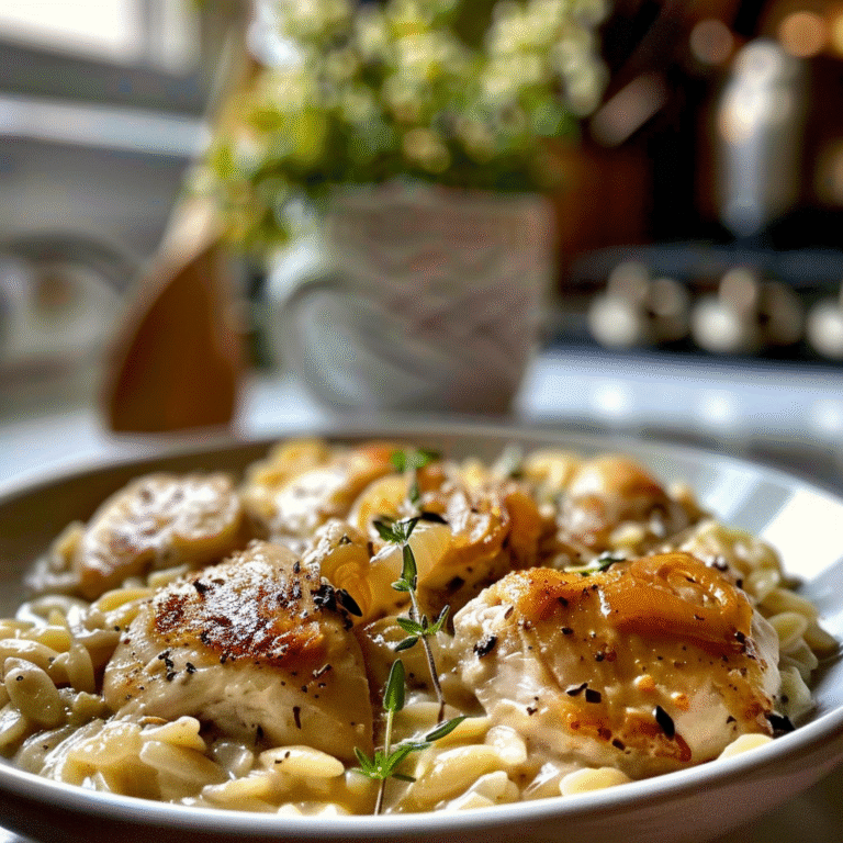 Creamy French Onion Chicken and Orzo in the Crockpot