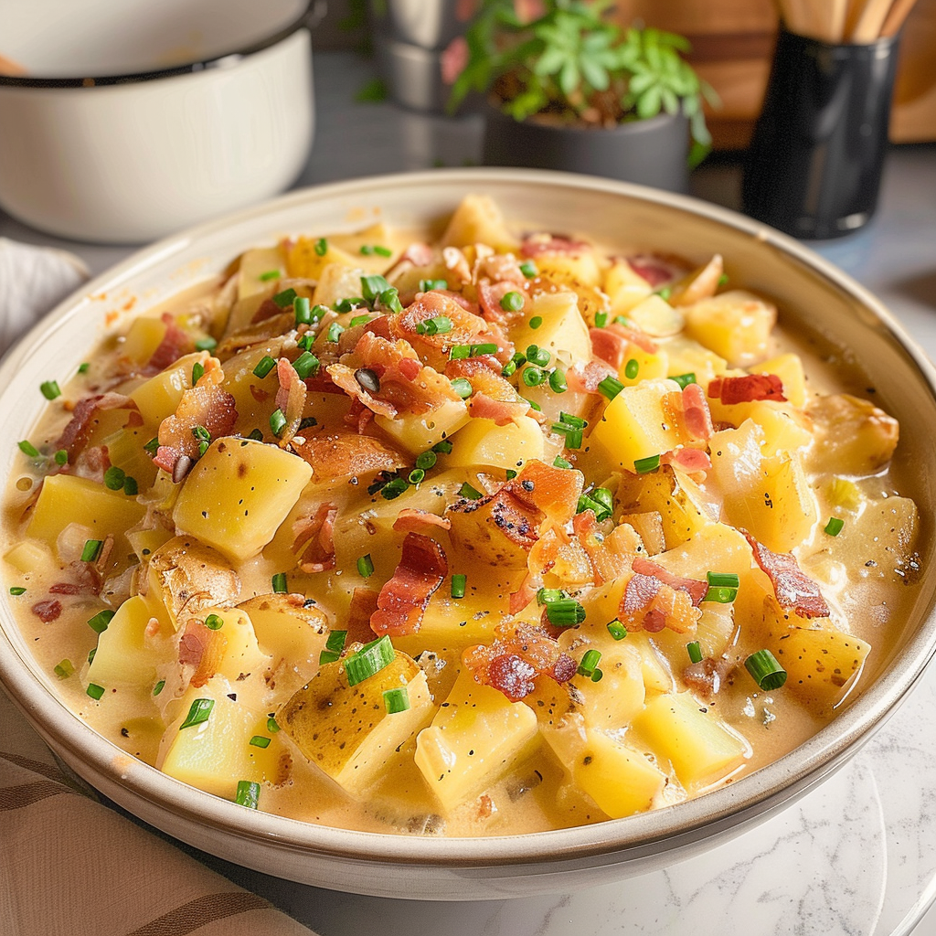 Indulge in the comforting warmth of this creamy Potato Bacon Chowder, where tender potatoes and crispy bacon create a delightful blend of flavors. Perfect for chilly evenings or cozy gatherings, this chowder is quick to prepare and sure to impress. Enjoy it as a hearty main dish or a satisfying side while making cherished memories with loved ones.