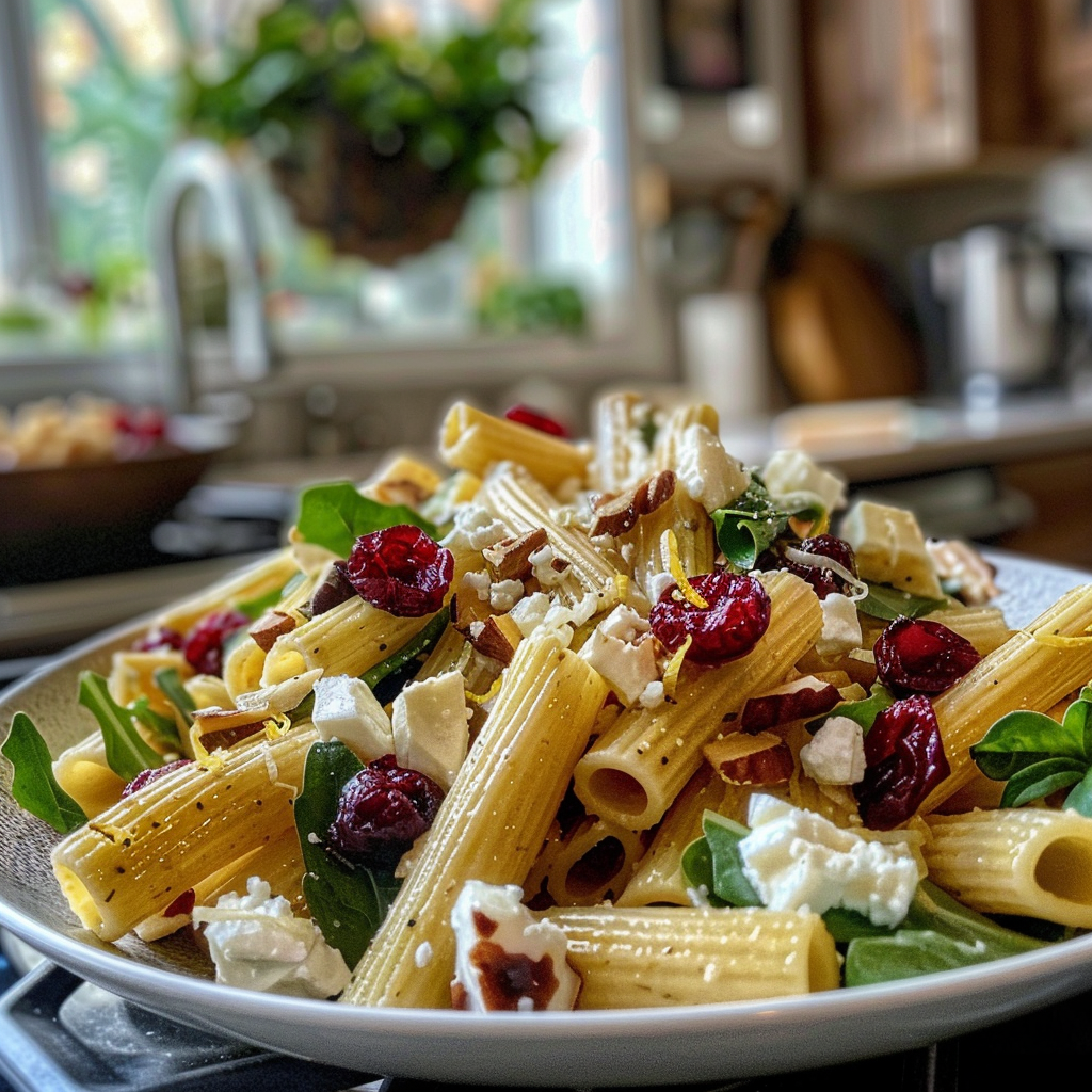 Feta & Cranberry Rigatoni Salad with Lemon Vinaigrette