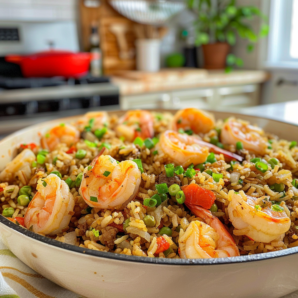 Start by sautéing the vegetables to build flavor before adding the rice and shrimp. Cook shrimp until just pink, ensuring they stay juicy and tender.