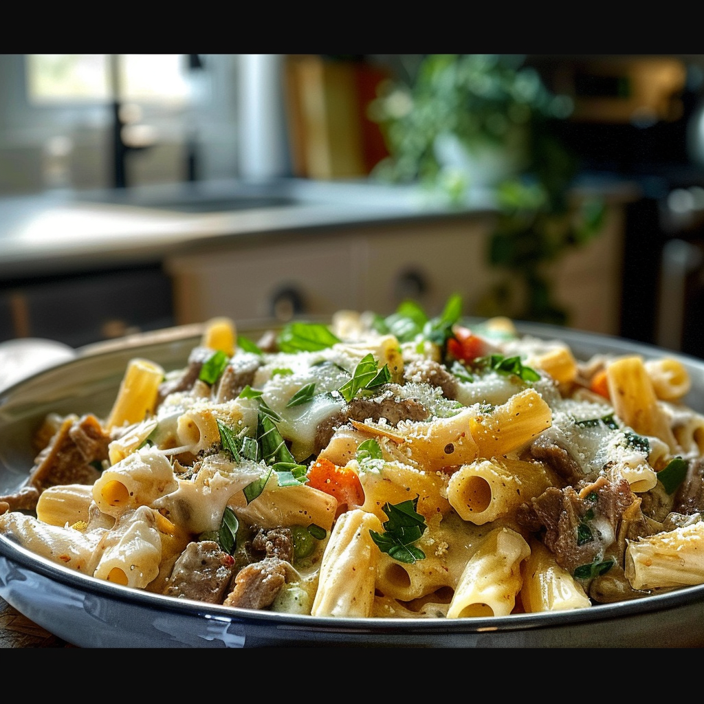 Sharing this dish at my last dinner party earned me rave reviews! Friends were sneaking seconds before I could even serve dessert, proving how irresistible creamy cheesy Philly cheesesteak pasta is.