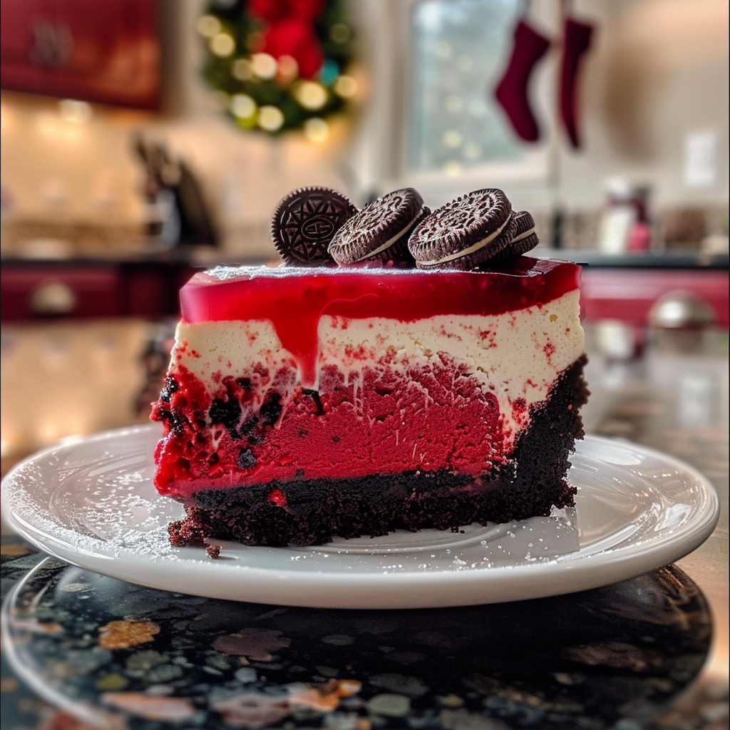 Christmas Red Velvet Cheesecake with Oreo Crust