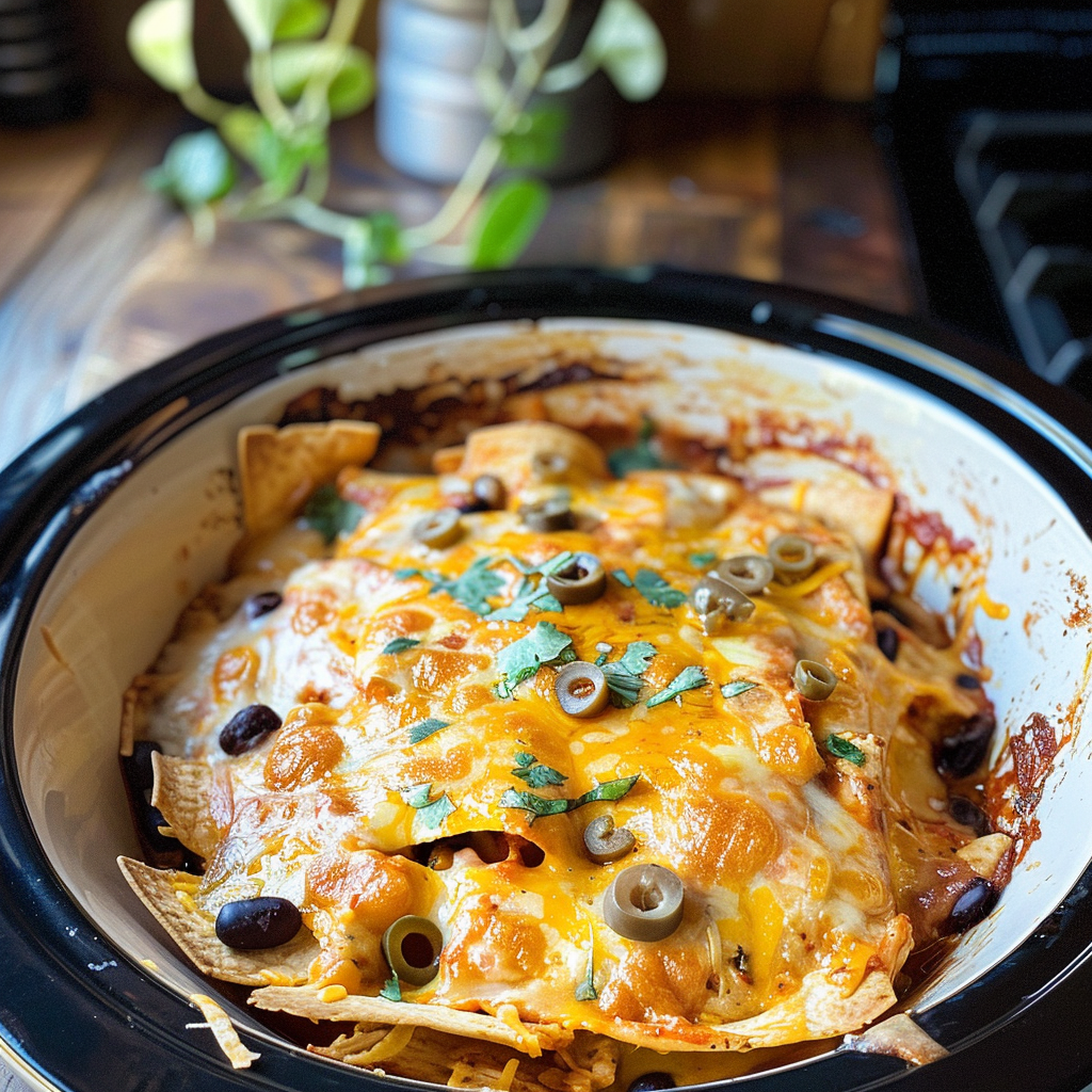 Start by layering the ingredients in the crockpot: chicken, enchilada sauce, and tortillas. Cook on low for 6-8 hours for tender, flavorful results.