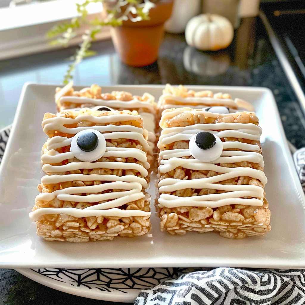 As I recall my first attempt to make these treats, it was an adventure filled with sticky fingers and laughter. My kitchen turned into a mini haunted house, with marshmallows flying everywhere as I tried to create the perfect mummy look. Halloween-themed nachos The kids loved them so much that they forgot all about the scary movie we had planned for the evening. Halloween Mummy Rice Krispie Treats are perfect for parties, school events, or simply indulging your sweet tooth on a spooky night!