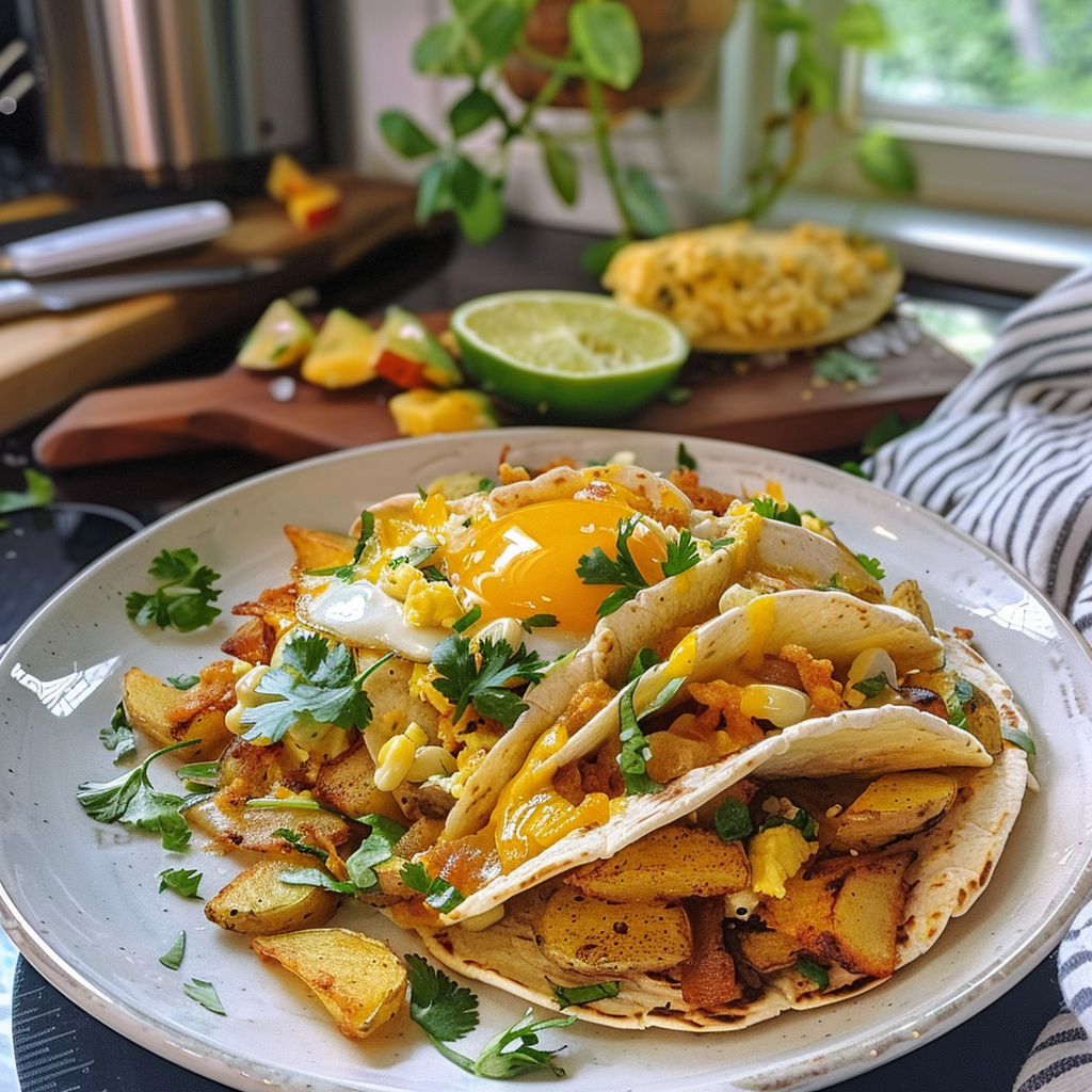 Start by frying the diced potatoes until golden and crispy; then scramble eggs while the potatoes cook. Combine them in warm tortillas for the ultimate taco experience.